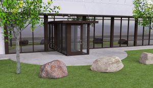 EntraBOX Security Entrances increase roof-line security and protect your turnstiles with custom-built canopies and architecture
