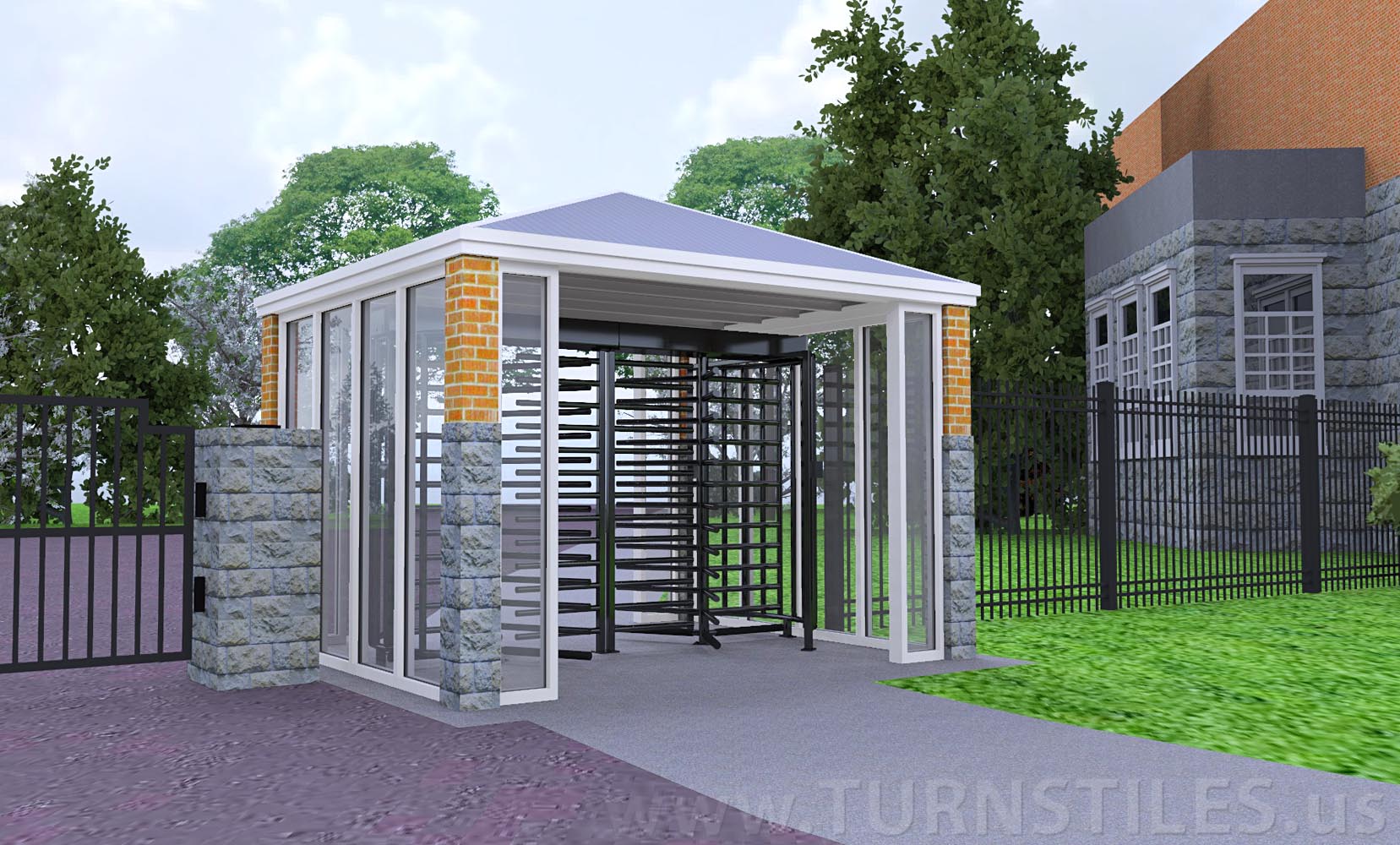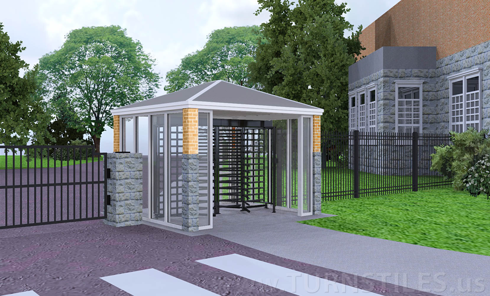 We are pleased to present our custom Turnstile Canopy Entrance Solution for the US/Canadian border in Vermont. Please find equipment information listed below. Thank you for choosing TURNSTILES.us.