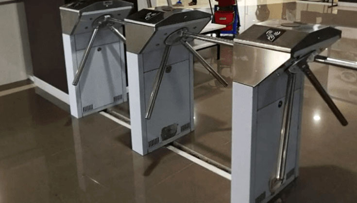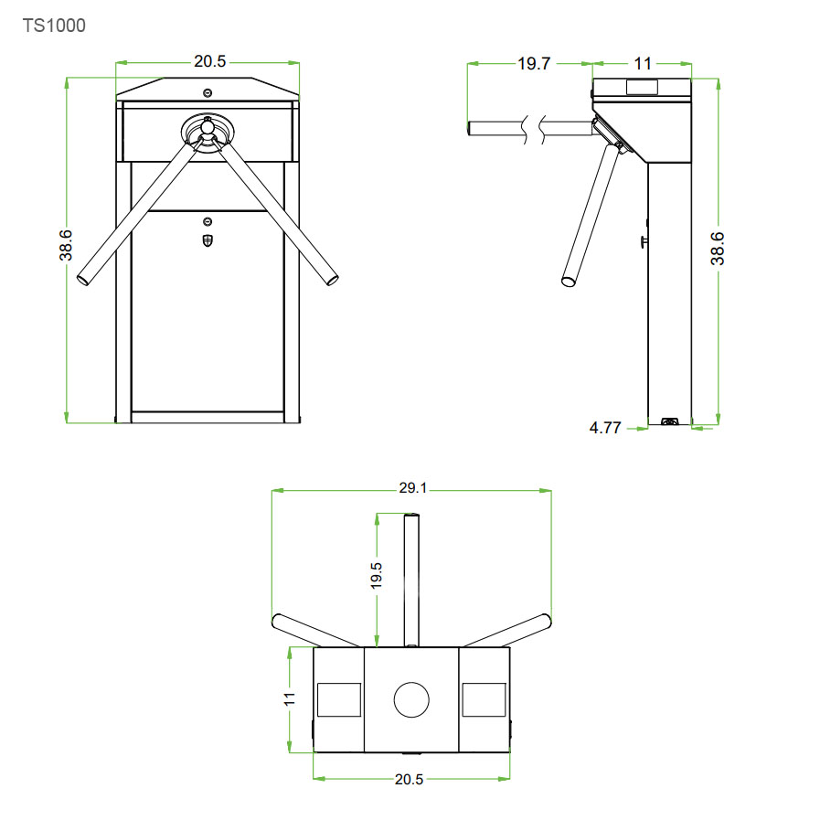 TS1000 is a single-lane tripod turnstile series designed for smooth and silent operation and draws very little power. It’s made of stainless steel which makes TS1000 highly durable. It is also surprisingly compact and designed to operate in small workspaces. Tripod arms are normally held in a locked position, thus denying passage to the secured side. Upon the reader (RFID and/or fingerprint optional) positively recognizing a user’s valid access card or fingerprint, its tripod arms unlock, thus allowing users passage to the secured side. The option for a built-in REX button allows users to conveniently exit the secured side without needing to use their access card or fingerprint. During emergencies and power outages the tripod arms completely collapse, thereby ensuring users FAST unencumbered exit to safety. TS1000 provides both security and convenience, all in a very durable compact design.